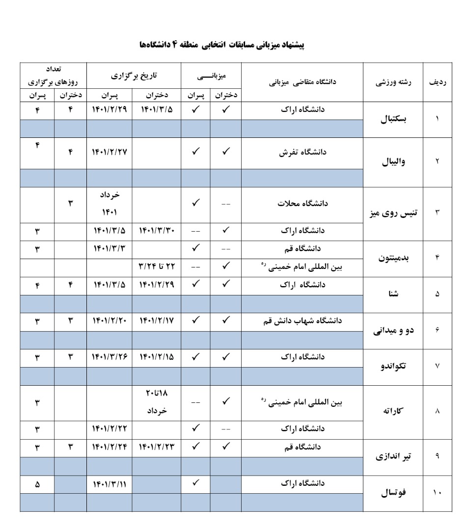 We would like to inform esteemed individuals that the fifteenth round of the Sports Olympiad for male and female students from universities across the country will be hosted by Gilan University this summer. In order to participate in this Olympiad, esteemed students must take part in the qualifying competitions of Region 4 of the country's universities and secure their quota. Therefore, female and male students with a sports background in the disciplines announced by the General Department of Physical Education of the Ministry of Science, Research, and Technology are requested to contact Mr. Hamidi, the head of the Physical Education Department of Qom University, at the phone number 09101366150 for membership in the university teams and participation in the qualifying competitions.