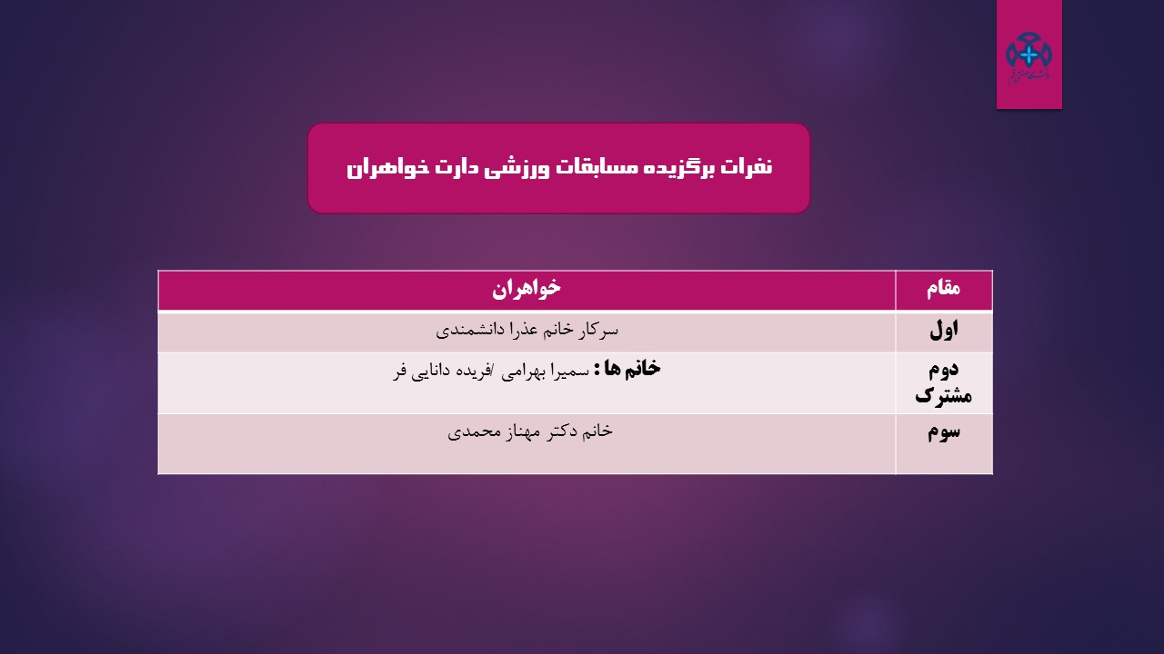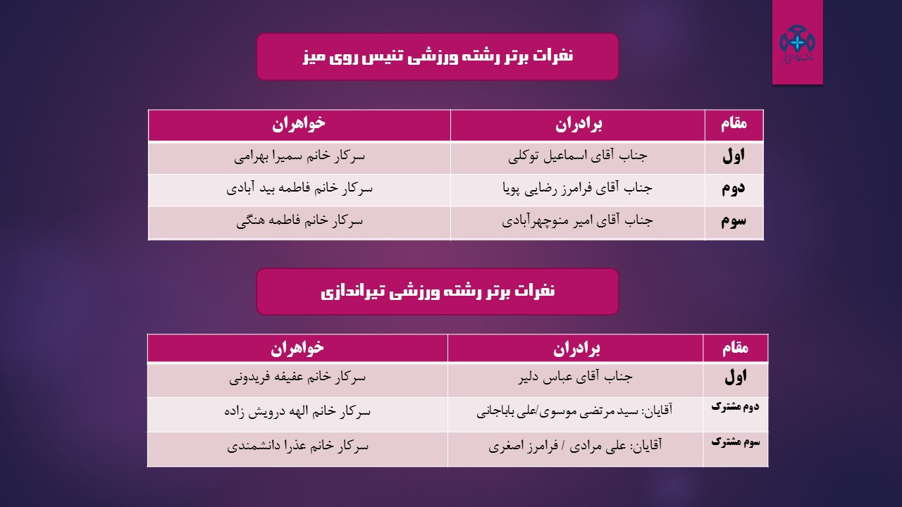 This competition took place in four sports disciplines: darts, shooting, penalty kicks, and table tennis, and was conducted in two categories, women and men, at the Shahid Shahriari Sports Hall of Qom University of Technology.