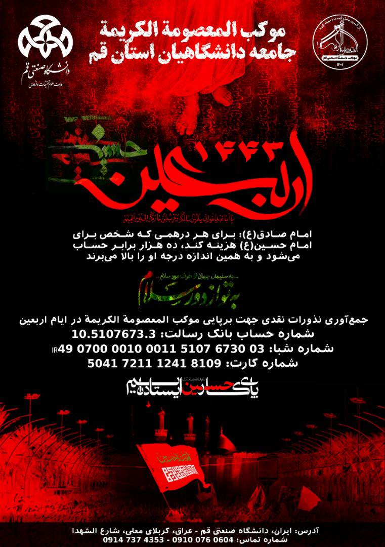 According to the university's public relations: The mobile station of Qom University, named Al-Masoumeh Al-Karimeh, will be established during Arbaeen Hosseini on Shahid Avenue in the city of Karbala. This mobile station, in collaboration with benefactors, the representative office of the Supreme Leader in the university, the student affairs and cultural offices, and the staff and student Basij, is prepared to host and accommodate the pilgrims. Additionally, through arranged programs, the student Basij will facilitate a pilgrimage caravan from September 7 to September 18, providing free transportation for student pilgrims to the Iraqi border. It is worth mentioning that this mobile station is currently being prepared.