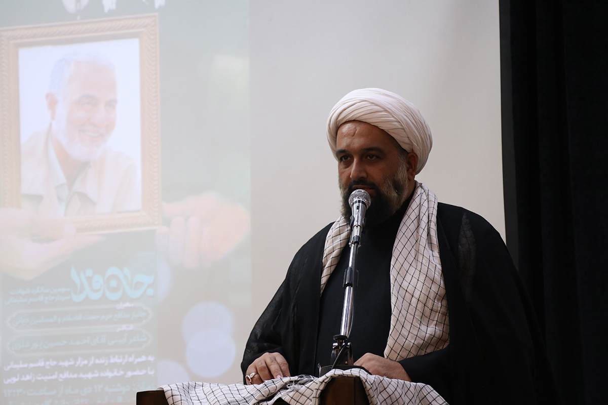 In this ceremony, Hojjatoleslam and Muslims Deyani, a comrade of Martyr Qasem Soleimani, elaborated on the bravery of Martyr Qasem and discussed the circumstances of his martyrdom.