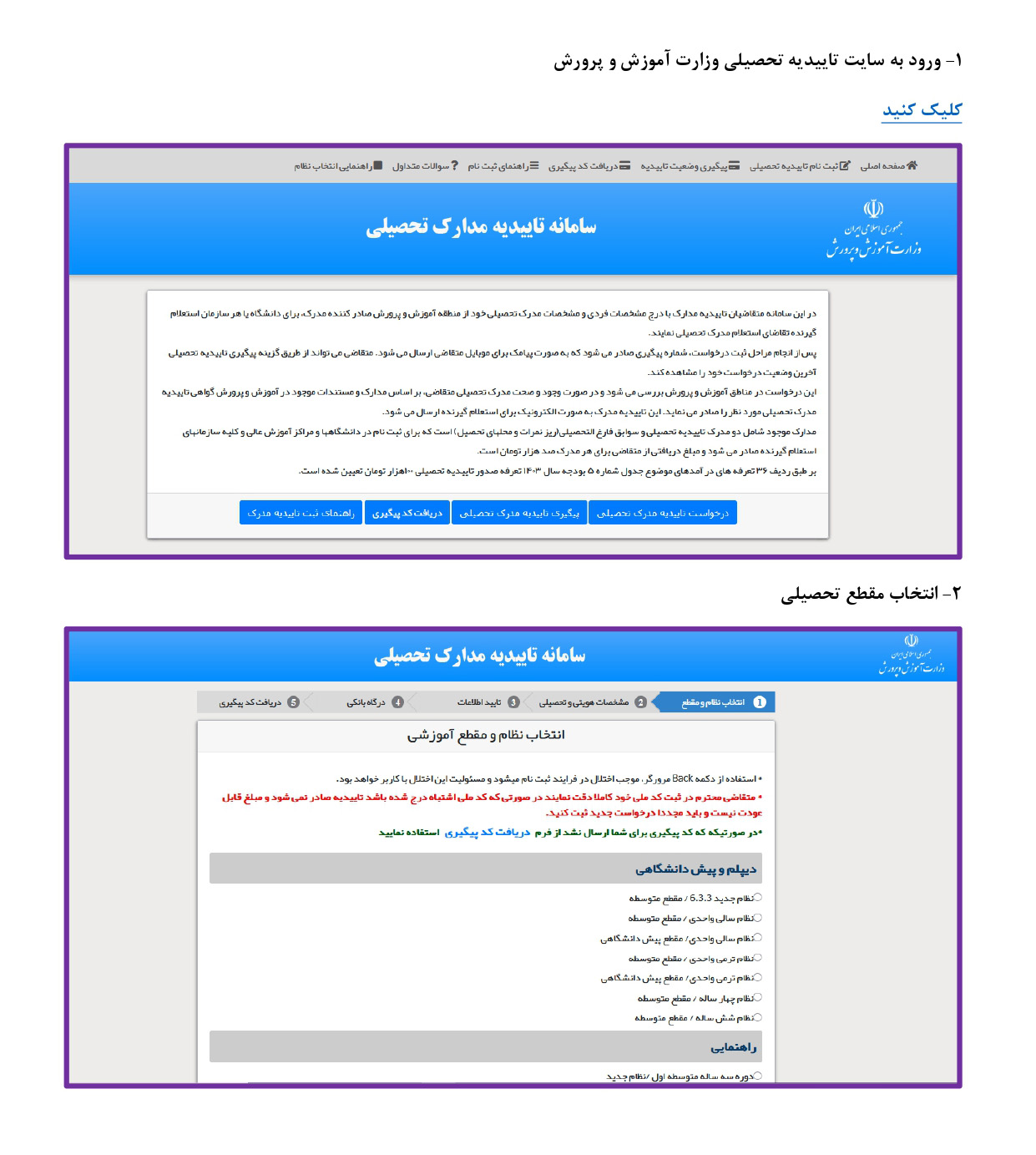 فرآیند اخذ تاییدیه تحصیلی کاردانی، کارشناسی و...