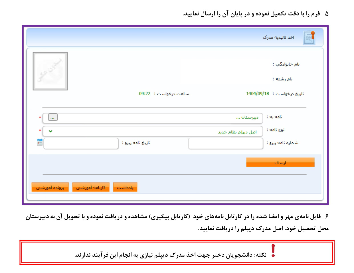 فرآیند اخذ تاییدیه تحصیلی دیپلم