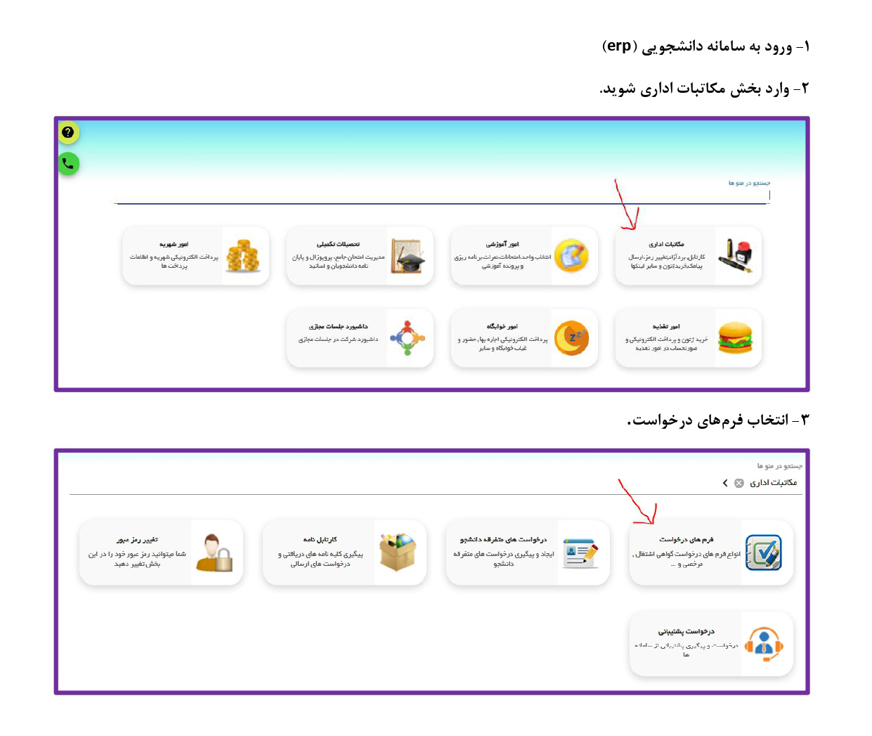 فرآیند ارسال درخواست در سامانه پشتیبانی آموزش یار