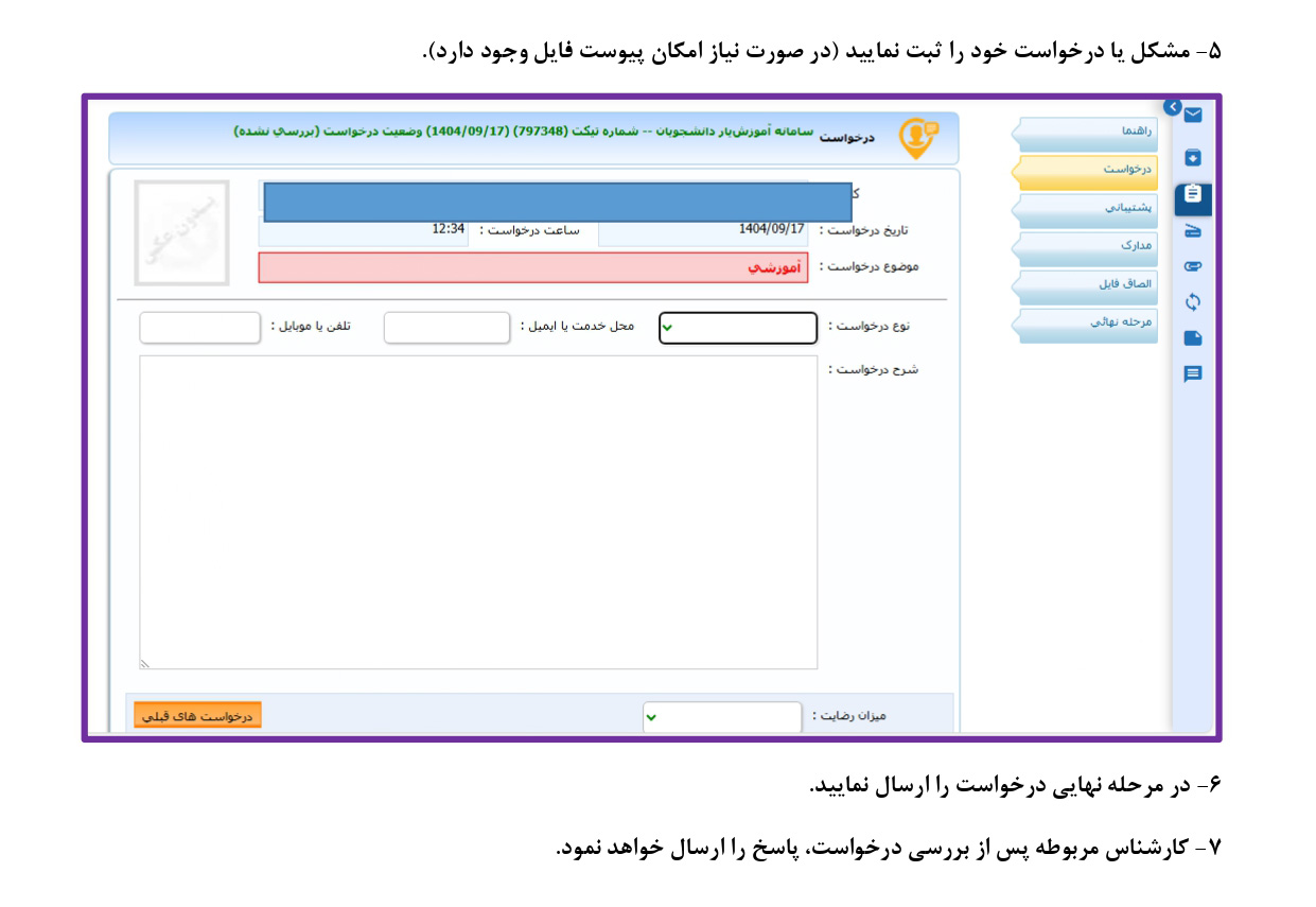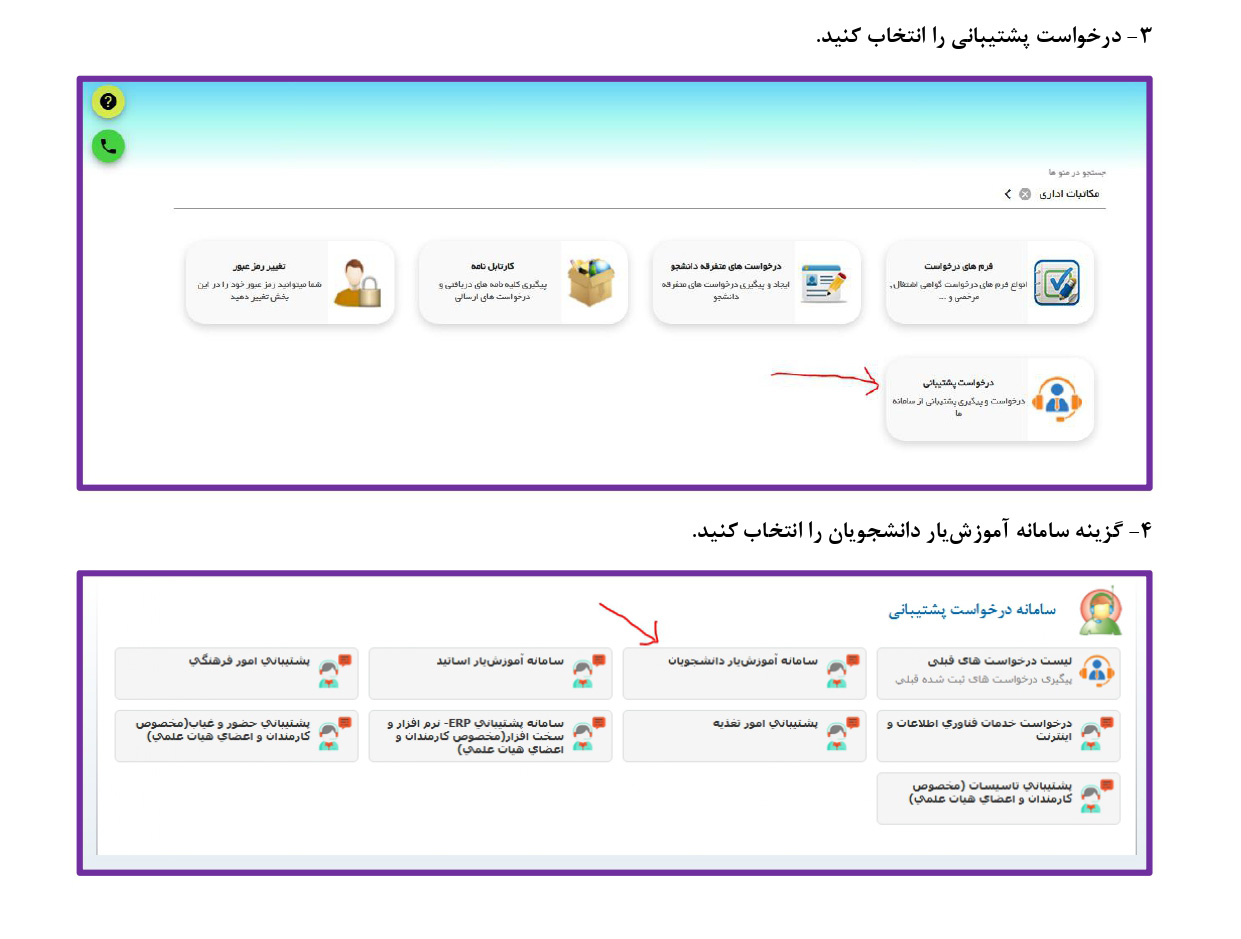 فرآیند ارسال درخواست در سامانه پشتیبانی آموزش یار
