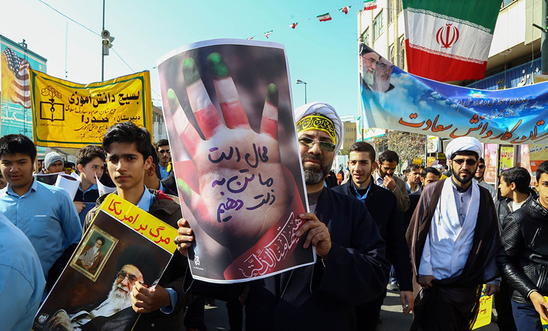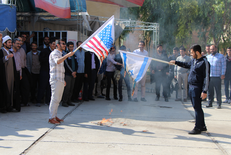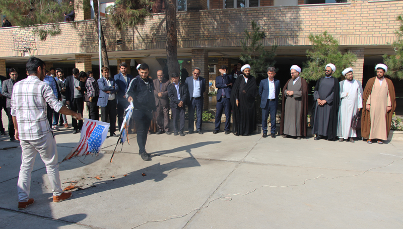 استکبار ستیزی دانشگاهیان صنعتی قم با حضور پرشور در راهپیمایی یوم الله 13 آبان و به آتش کشیدن پرچم آمریکای جنایتکار و اسرائیل غاصب